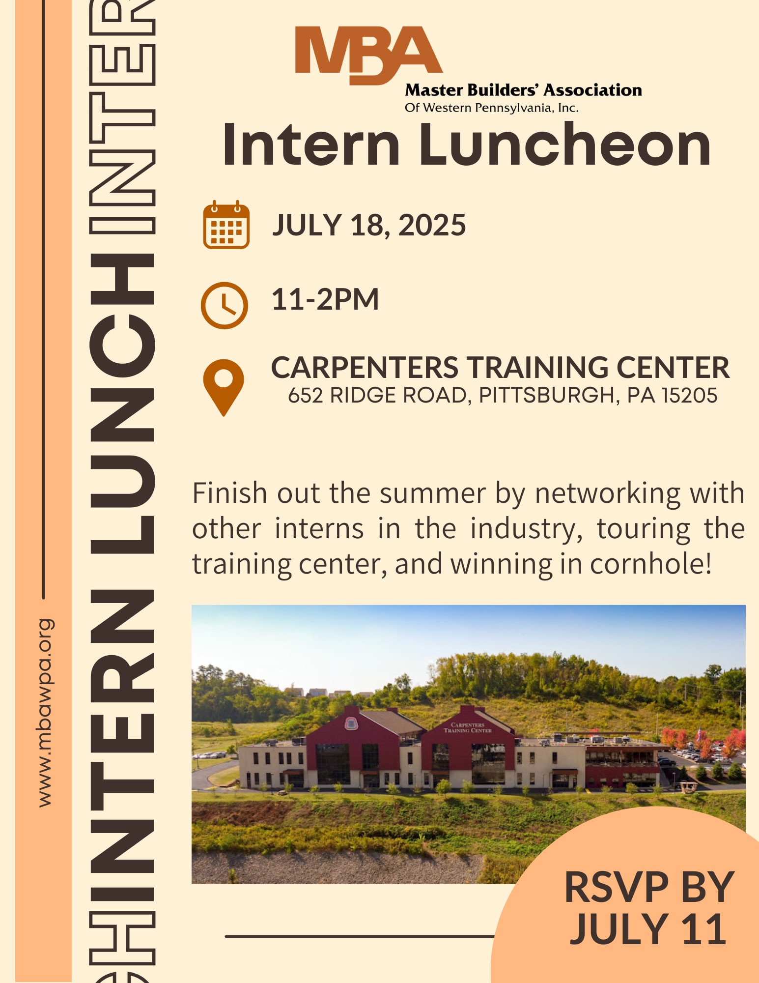 Finish out the summer by networking with other interns in the industry, touring the Carpenter's training center, and winning in cornhole!